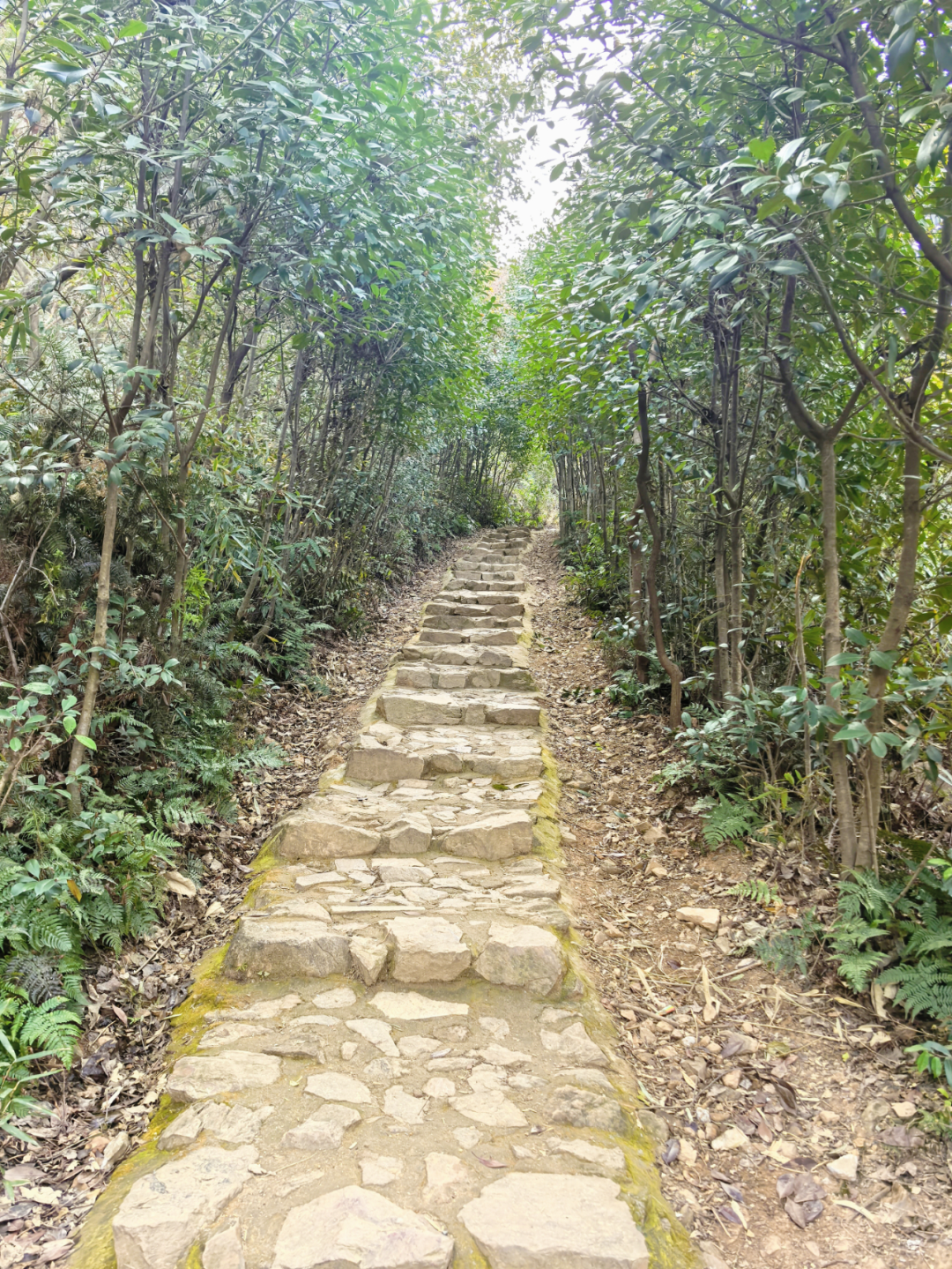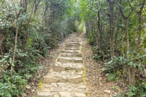 02:自然景观:古道蜿蜒于青山之间,沿途可见成片茶园整齐排列、茂密的杉树林与竹林、山涧清泉、脚下是历经百年磨损的青石板路。还有一处观景平台,太湖西畔的湖光山色尽收眼底,被誉为“江南小仙境”
