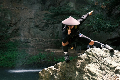 09:30左右到达目的地,下车整理行装跟随领队进入绿色的原始山谷,先会路过一个芝麻卡门石,继续往前走,映入眼帘的是一个个瀑布,先是淑女瀑,接下来是凹窝悬瀑,一线瀑。沿途的山泉溪流纵横交错,在水潭和瀑布之间穿梭,这里水质清澈,风景宜人