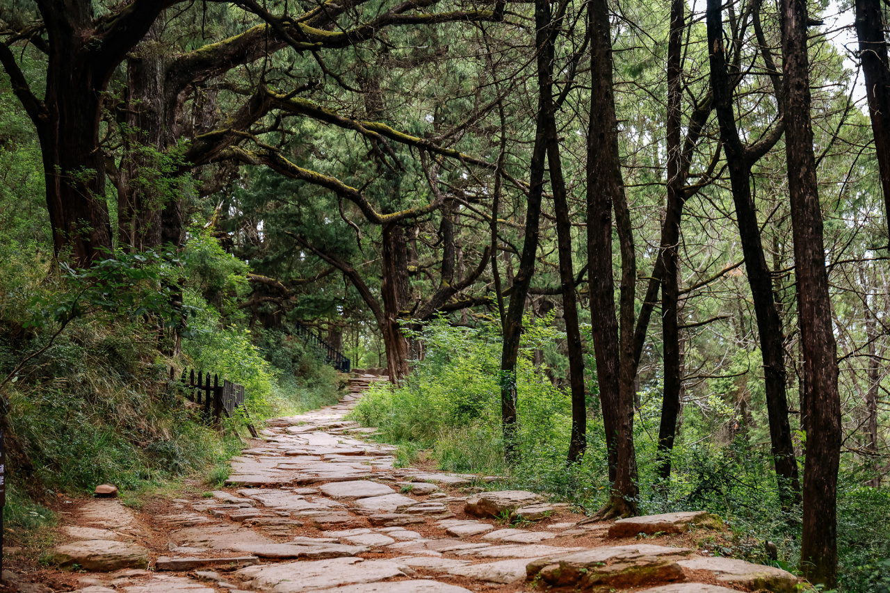 都说光雾山的历史,是一部镌刻在米仓古道上的文明史。与金牛道、荔枝道并称“中国三大古蜀道”的【米仓古道】是中国乃至世界交通史上的活化石。沿着古道慢慢游览,低头找一找青石板上的马蹄印,这是当年盐商牵着马日复一日走过的痕迹。走累了在路边的石凳上休息,指尖抚过历经岁月的石板,红叶飘落在蜿蜒的青石板路上,立刻就能感受到一种幽深的古意,仿佛置身于一幅流动的历史画卷之中。