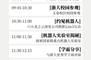 *特别说明:若浙大机器人实验室因为校园活动不开放,则参观浙大RC足球机器人实验室或航天航空实验室